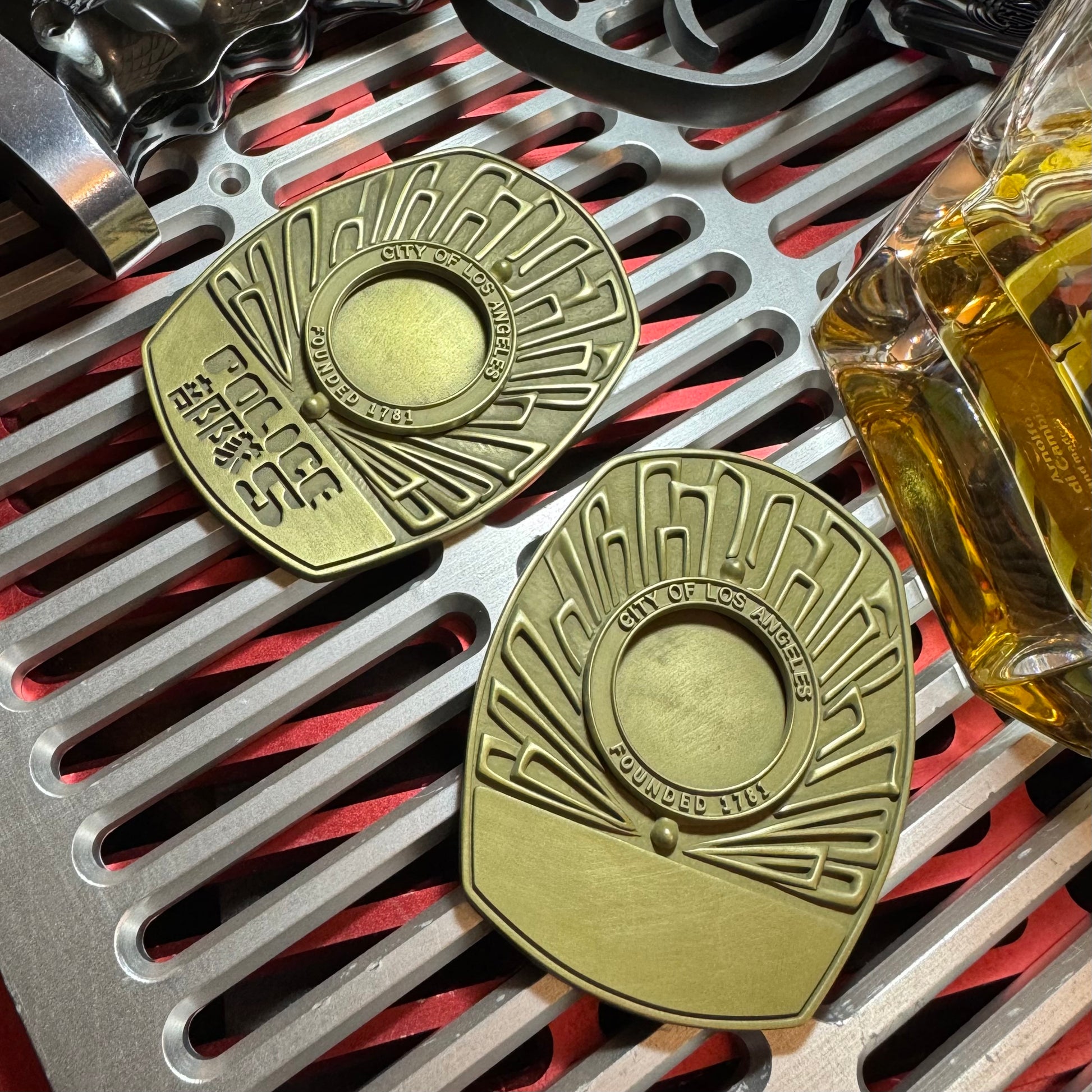 We are proud to offer two versions of the iconic detective badge from the 1982 dystopian sci-fi detective classic movie (2019 in the universe!)